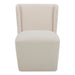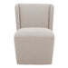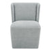 The Cormac rolling dining chair is all about comfort with a generously padded seat and backrest, a slight curve of the back and caster wheels that effortlessly glide across the floor. Crafted from high-performance fabric that is soft to the touch yet resilient against stains, spills, and daily wear.