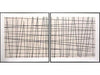 This dramatic square diptych features black crosshatched lines atop a neutral background. Features a natural black floater frame.