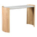 A lunar-like tablescape of raw beauty, elevate your interiors with the stunning modern details of the Dala marble & oak console table. Bring this French Art Deco-inspired silhouette to your inner circle, with curved legs detailed in solid oak - the organic wild grains are emphasized with delightful repose. Unfailingly stylish, this design is perfect for layering into your space as a sculptural and sinuous accent table with natural characteristics that only add to its utter charm.