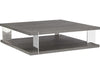 A modern square coffee table crafted with smoked oak and finished with stunning polished stainless steel. Features a shelf for extra storage.