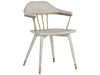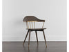 The classic elegance of this dining chair is guaranteed to make a statement in any dining room. The stylish antique brass spindles complement the matching metal caps of the chair legs. Completed with a dark brown solid oak wood base. Also available in grey solid oak wood.