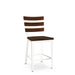 Here it is—the stool you’ve been looking for to complete your industrial design dining room. Its stark lines and slatted back with exposed screws hit all the right style marks. Note the contrast between the angle iron front legs and rectangular back legs. It’s all in the detail!