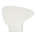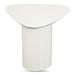 The Eden accent table features a rounded triangular shape and oval pedestal base, creating a sculptural silhouette that exudes modern sophistication. An ivory white and black high gloss finishes this table's surface, reflecting light, brightening and opening up any space.