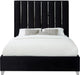 Create a bold yet welcoming sanctuary in your bedroom with this Enzo Black Velvet Full Bed. The chrome channel design features velvet fabric upholstery for a sleek, glamorous look. The chrome legs provide support for the plank-style base, ensuring durability and long-lived beauty. Full slats are included, making setup easy and quick. No box spring is required with this bed, so you can use it with your choice of mattress.