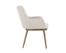 This compact barrel back armchair will add rustic and mid-century modern styling to dining and living spaces. Stocked in our beige linen fabric with antique brass steel frame and legs.