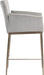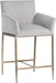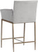 A modern counter stool with contemporary finishes. This charming barstool sits comfortably while bringing a touch of elegance to dining spaces. Finished in polo club kohl grey performance fabric with an antique brass frame. Performance fabric is moisture repellent, stain resistant and easy to clean. Suitable for various dining, kitchen and bar spaces of all sizes.