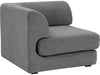 Comfortable and full of creative possibilities, this modular corner chair features a stylish and contemporary design that is ideal for any space. Upholstered in danny dark grey fabric and completed with black solid rubberwood legs. This piece can be sourced alone or in a variety of combinations with the coordinating Harmony armless chair, left-shelf armless chair, right-shelf armless chair and ottoman sectional pieces.