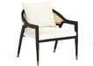 Infusing an airy coastal look with a hint of sophistication, this lounge chair boasts a stunning design that is ideal for any space. Stocked in gold sky fabric with a matte black solid birch wood frame. Completed with a rattan backrest and gold metal foot caps. Also available in linoso ivory performance fabric. Handle With Care: This design has been crafted with rattan. This artisan-crafted material features intricate weaving that results in natural variations where no two pieces are alike. Colour and texture differences are to be expected and embraced with this natural material. Due to the weaving process used, the fibres in this material may display shorter or longer lengths where the weaving ends. Visit our Product Care page for more information on how to ensure the lasting beauty of this piece.