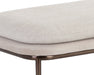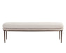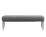 Rejuvenate any space with this contemporary bench that features a sleek design. Upholstered in chacha cream and meg taupe fabrics with a double cushioned seat. Completed with a dark bronze stainless steel base. Also available in a chacha grey and antonio charcoal fabric combination with a gunmetal stainless steel base. Coordinating stool also available.