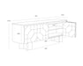 Bold design and mixed materials establish the modern presence of the Lautrec Sideboard. Crafted with stainless steel and a stunning cream marble top, the Lautrec features captivating textural forms on the front sliding doors. Supported with uniquely curved legs in an antique brass finish.