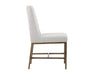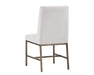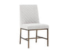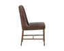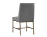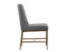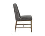 Invigorate dining spaces with this classic dining chair. Features beautiful diamond stitching on the interior seat back and an antique brass frame steel frame. Stocked in light or dark grey fabric and havana dark brown, castillo cream, coal black, or overcast grey faux leather. Handle With Care: This design has been crafted with faux leather. Faux leather is manufactured to reflect the natural characteristics of leather; as such, colour variations, markings, wrinkles, grooves, and light scratches are appreciated characteristics. No two pieces will be alike. Visit our Product Care page for more information on how to ensure the lasting beauty of this piece.