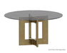 A stylish, geometric dining table base constructed from stainless steel with a gold lacquer finish. Intended for use with a 59" round glass dining table top, or use two bases with a 86.5" glass top for a rectangular dining table combination. Table tops sold separately. Designed for use with glass table tops only.