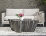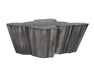 This edgy coffee table features a uniquely organic shape. Featuring a sculpted steel frame with a hand painted antique bronze finish, the design is bold and eye-catching. Suitable various living and lounge spaces. Also available with an antique grey finish.