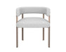 This beautiful dining armchair is designed with style and elegance. Features a contemporary barrelback seat in ernst sandstone fabric with a powder coated steel base in a gold finish.