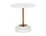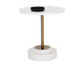 Complete an industrial space with this round bistro table. Designed with a concrete top and base with a supporting antique brass steel frame. A perfect addition to small kitchen and dining areas. Suitable for indoor and covered outdoor spaces. Also available in grey concrete with a black steel base. Crafted from a natural concrete mix, each piece will look different, with variations of white hues that will enhance over time.