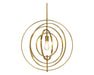 A striking pendant light that features an orbit-shaped frame. The brushed brass frame can be adjusted to suit design needs. Install in multiples for a dramatic effect.