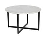Clean and sleek, this round coffee table offers an effortlessly modern design. Features a white marble top and completed with a black powder coated steel base. As marble is a natural material, unique veining, pitting, fissures, micro-cracks and colour variations are all characteristics that add to the uniqueness and beauty of each piece.