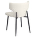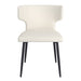The casual elegance of this dining chair is surpassed only by its comfort. The curved back and cushioned seat will provide hours of comfort, while the modern wing back design will continue to please the eyes. Faux leather upholstery is easy to wipe clean and the black metal legs are a seamless fit to any decor. Use in a formal dining room for those epic holiday feasts, or as your casual kitchen seating for everyday memories.