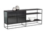 Inspired by mid-century modern designs, this large sideboard evokes a timeless and minimalist style. Crafted with a matte black iron frame and features fluted glass doors. Also available in a small size.