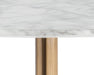 A contemporary bistro table featuring a marble-look top and brushed antique brass steel spider legs. Perfect for smaller kitchen and dining spaces.