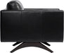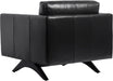 A stylish, retro-inspired armchair. The masculine design features a comfortable seat in cortina black leather with dark brown solid oak wood legs. Coordinating sofa also available. Handle with Care: This design has been crafted with 100% genuine leather. Leather is a natural material; as such, colour variations, markings, wrinkles, grooves and light scratches are acceptable and appreciated characteristics. No two pieces are alike. Visit our Product Care page for more information on how to ensure the lasting beauty of this piece.