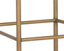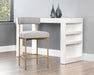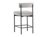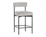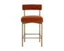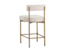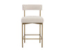 Exude modern style this open back counter stool. Stocked in arena cement fabric with an antique brass steel frame.