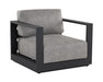 Cherish the outdoors with this modern armchair from the Outdoor by SUNPAN collection that offers a comfortable and laid-back style. Stocked in lanikai salt and pepper fabric and completed with a powder coated charcoal aluminum frame. Also available in stinson white fabric with a greige aluminum frame. Coordinating sofa also available.